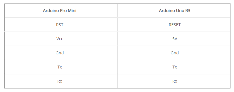 Module Arduino Pro Mini không có sẵn giao tiếp USB. Điều này có nghĩa là bạn không thể cắm trực tiếp board Arduino Pro Mini vào máy tính như Arduino Mega 2560, Arduino Uno R3, Arduino Nano. Tuy nhiên có thể sử dụng board Arduino Uno R3 để lập trình cho Arduino Pro Mini. Cách làm như sau: