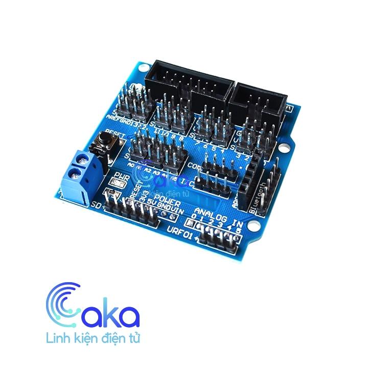 Arduino Sensor Shield V5.0 giúp cho việc kết nối giữa board mạch Arduino uno với các module ngoại vi như Cảm biến, Động cơ, Rơle, nút bấm… thuận tiện và dễ dàng hơn, các dây kết nối không bị chồng chéo, giúp nâng cao sự gọn gàng và tính thẩm mỹ cho việc kết nối.