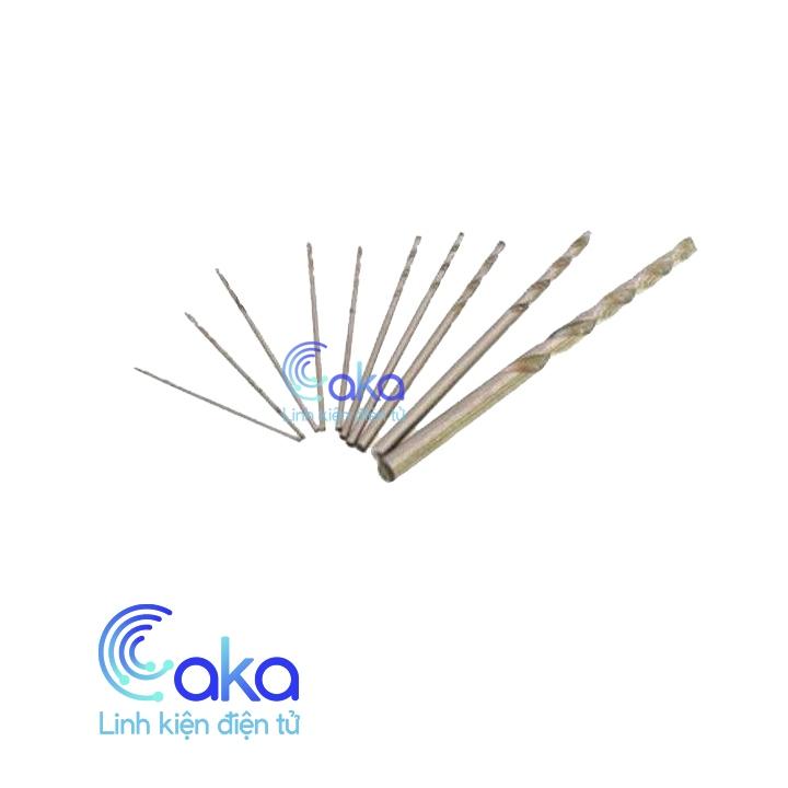 Bộ mũi khoan gồm : 0.5 ; 0.6 ; 0.7 ; 0.8 ; 0.9 ; 1.0 ; 1.2; 1.5; 2.0; 3.0; 4.0; 5.0 mm