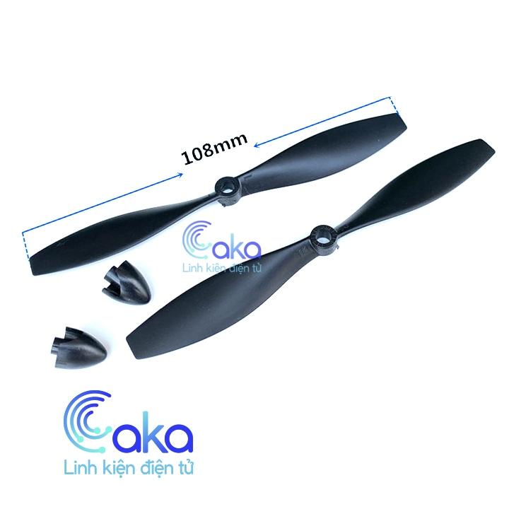 Cặp cánh quạt máy bay thuận nghịch 108mm trục 2mm với chất liệu nhựa tốt, chịu được va đập. Cánh có kích thước lớn vì vậy tạo ra lực lớn, thích hợp với các động cơ có tốc độ tương đối cỡ như 1400kv, A2212.