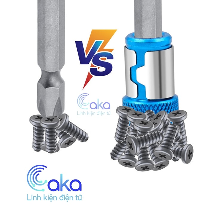 - Đầu mũi bắt vít có lực từ lớn để hút các mũi ốc vít kim loại nhóm từ, tránh rơi vãi ốc vít trong quá trình thi công.