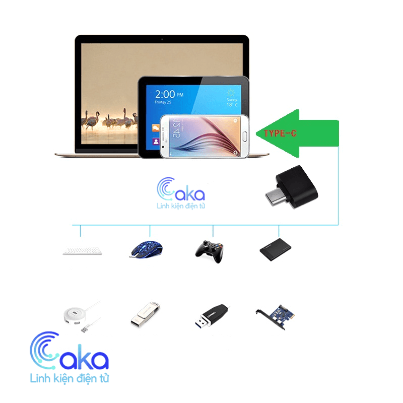 Có thể dùng USB OTG to Type C để kết nối thêm thiết bị ngoại vi như chuột, bàn phím, hoặc tay cầm cho smart phone hoặc máy tính bảng… Tương thích với hầu hết các thiết bị hệ điều hành Android hỗ trợ cổng OTG.