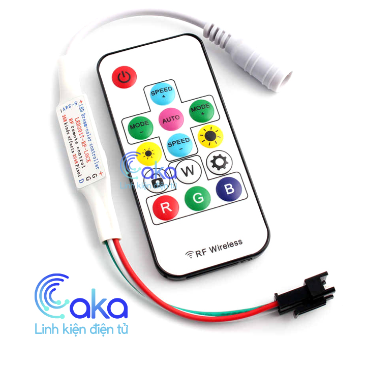 Bộ điều khiển Led WS2812B từ xa Mini Dream 14 key 5-24VDC này được sử dụng cho đèn led WS2812B. Dải sáng DC5-24V bao gồm 366 chế độ, rất sống động và đẹp. Mạch điều khiển LED có remote điều khiển bằng RF từ xa có kích thước nhỏ gọn, có thể sử dụng ở khoảng cách xa, kết nối dây đơn giản rất dễ sử dụng.