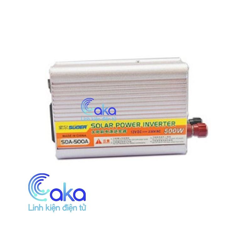 Bộ Inverter 12V-220VAC 500W được sử dụng để khắc phục vấn đề mất điện hoặc do quá tải sử dụng hoặc khi di chuyển tới nơi mà k có sẵn điện lưới 220VAC chúng tôi giới thiệu bộ sản phẩm chuyển đổi từ dòng điện một chiều điện áp 1 chiều sang dòng điện xoay chiều 220VAC tần số 50Hz lấy nguồn từ bình acquy 12v DC xe máy, xe hơi. Bộ tăng áp Inverter 500W chuyển dòng điện 12V thành dòng điện xoay chiều 220V dùng cho các thiết bị gia đình.