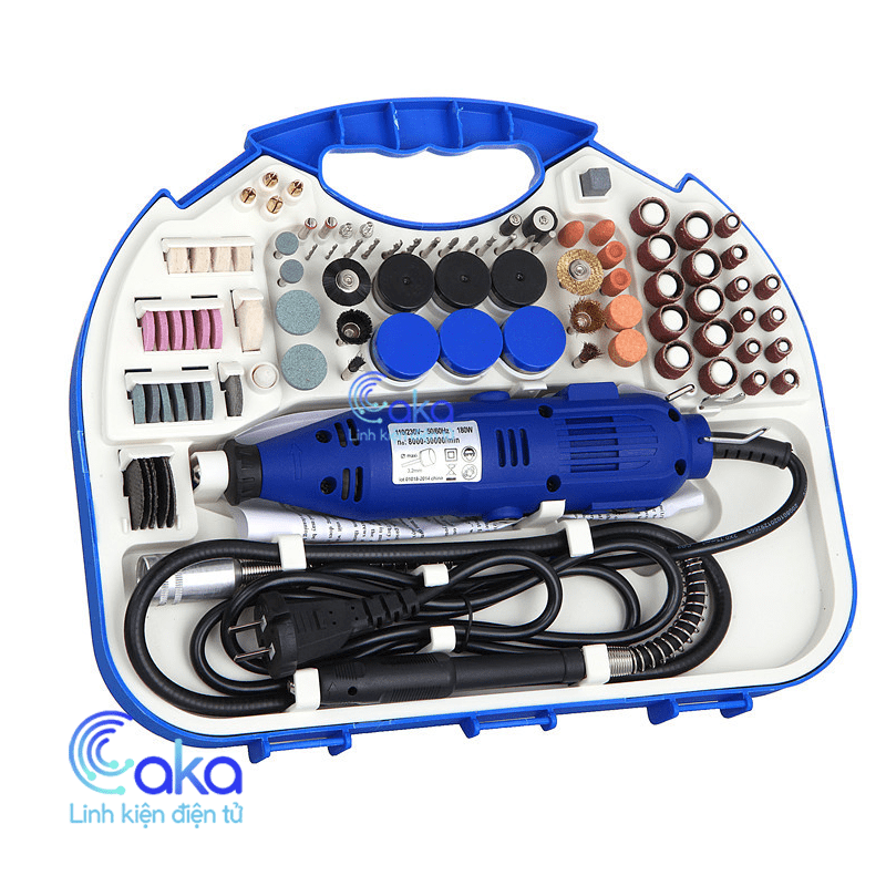 Bộ Máy Khoan Mài cắt Khắc mini Đa Năng 200W 100 chi tiết 6 tốc độ với thiết kế đa năng giúp bạn có thể khoan, mài, khắc, cắt, đánh bóng,...trên mọi chất liệu, là công cụ giúp bạn có thể làm ra những sản phẩm đặc biệt.