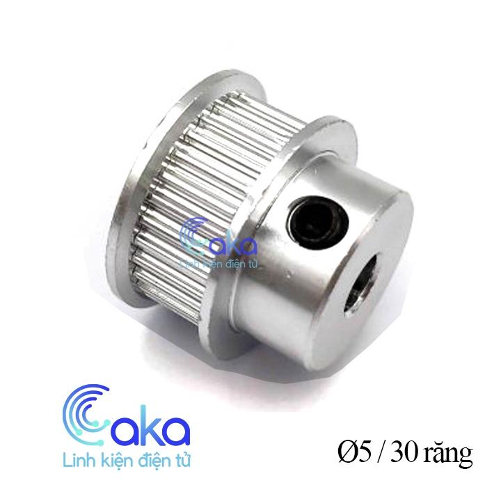 Buli đai GT2 trục 5mm 30 răng Trong dẫn động đai trên các máy in 3D, CNC, laser mini, ngoài puli chủ động lắp trên động cơ, còn cần có puli căng đai. ngoài ra nó còn được dùng truyền động làm lực kéo...