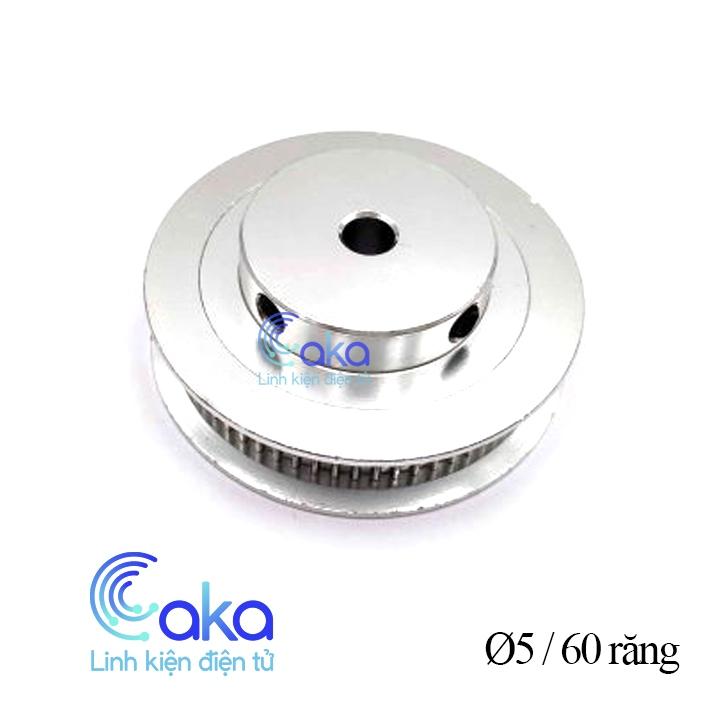 Buli đai GT2 trục 5mm 60 răng Trong dẫn động đai trên các máy in 3D, CNC, laser mini, ngoài puli chủ động lắp trên động cơ, còn cần có puli căng đai. ngoài ra nó còn được dùng truyền động làm lực kéo...