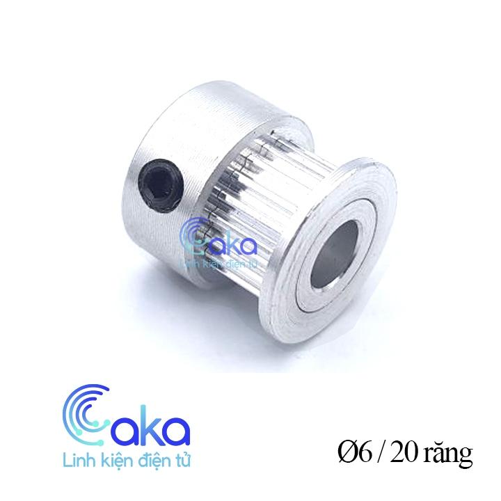 Buli đai GT2 trục 6mm 20 răng Trong dẫn động đai trên các máy in 3D, CNC, laser mini, ngoài puli chủ động lắp trên động cơ, còn cần có puli căng đai. ngoài ra nó còn được dùng truyền động làm lực kéo...