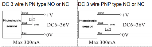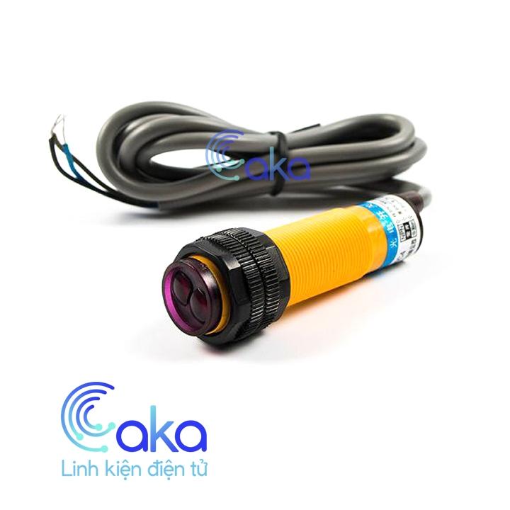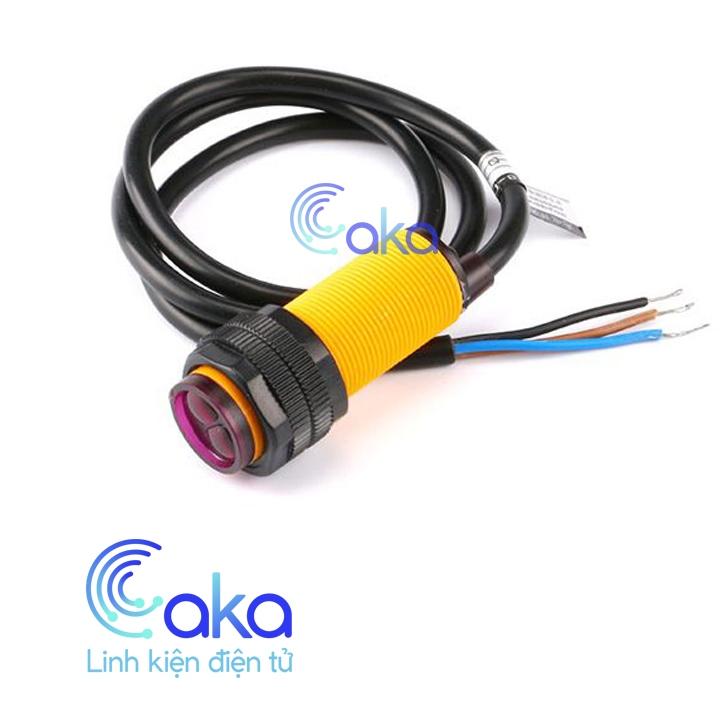 Cảm biến quang điện loại 3 dây, vật liệu nhựa, phạm vi phát hiện vật từ 0-80cm có thể điều chỉnh khoảng cách phát hiện bằng biến trở.