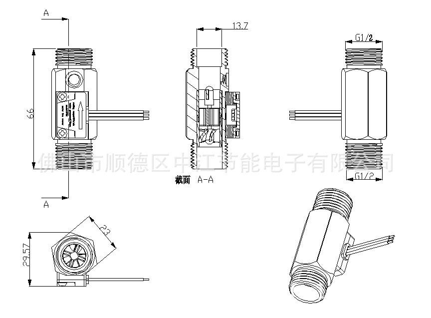 Cảm biến lưu lượng dựa trên nguyên lý cảm ứng hall. khi tốc độ dòng chảy khác nhau, bộ cảm biến tạo ra xung tương ứng.