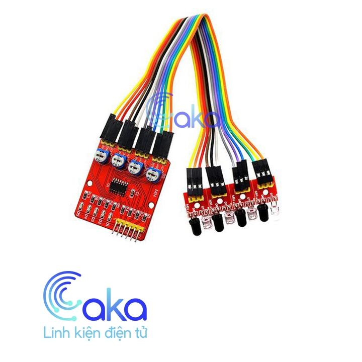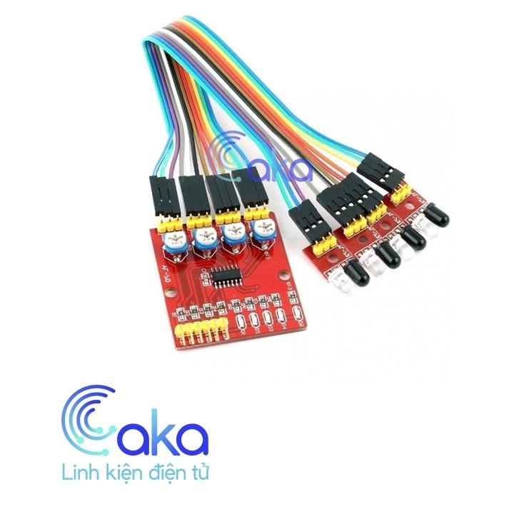 Module cảm biến dò line 4 kênh thích hợp cho một vài ứng dụng cho robot dò đường, robot tránh chướng ngại vật, có thể phân bố các đầu dò ở các cạnh của robot để dễ tránh chướng ngại vật ở 4 hướng,...