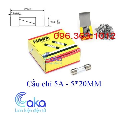 Cầu chì kính 5A 5x20mm là một phần tử hay thiết bị bảo vệ mạch điện bằng cách làm đứt mạch điện. Cầu chì kính 5A 5x20mm được sử dụng nhằm phòng tránh các hiện tượng quá tải trên đường dây gây cháy, nổ.