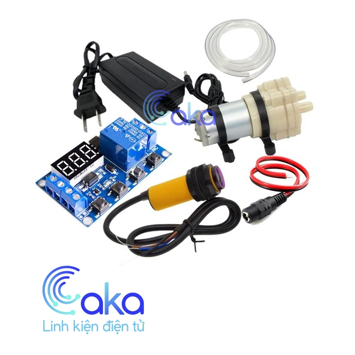 Combo Máy rửa tay tự động không tiếp xúc là bộ linh kiện làm máy rót nước, chắt triết dung dịch hay các chất lỏng khác bằng tự động không cần sử dụng tay mà bằng cảm biến tự động bật tắt.