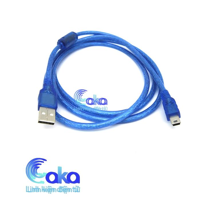 Dây cáp mini USB 1.5m, cáp nano là cáp kết nối có một đầu đực của USB 2.0 và một đầu đực USB Mini. Dây cáp USB này dùng để kết nối arduino với máy tính.