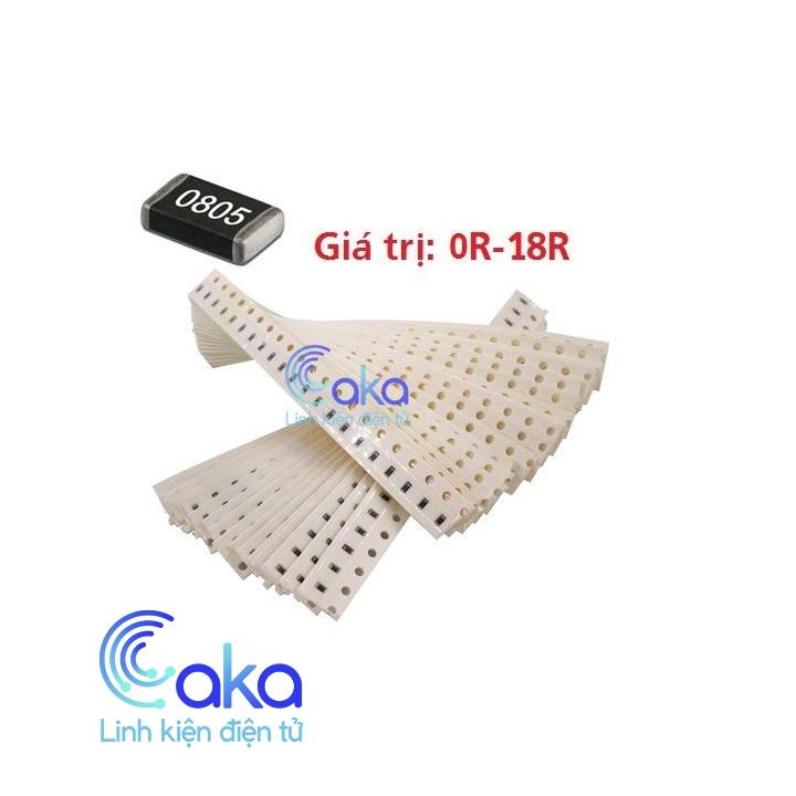 Điện trở dán SMD 0805 có kích thước 2.0 x 1.25 x 0.65 mm và công suất 0.125W, 1/8W