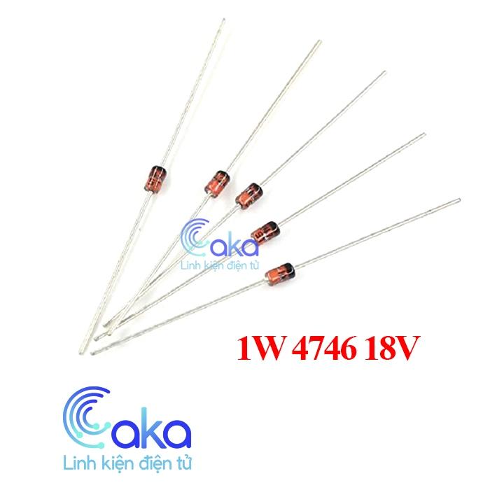 Diode Zenner 18V 1W 1N4746 còn gọi là điốt ổn áp, 1N4746 là một loại Diode bán dẫn làm việc ở chế độ phân cực ngược trên vùng điện áp đánh thủng (breakdown).