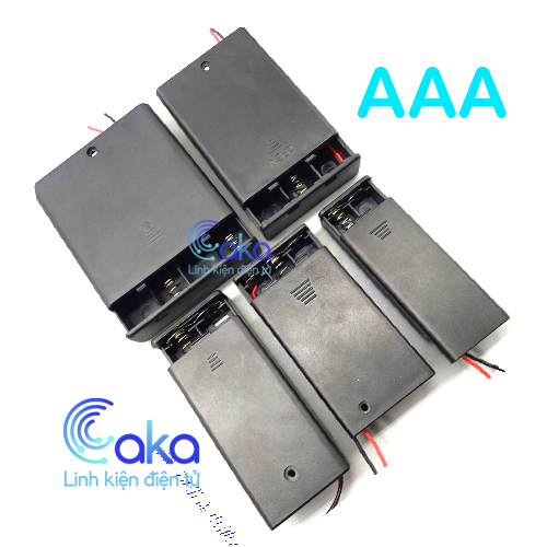 Hộp đựng pin cỡ AAA, có tác dụng đấu nối tiếp viên pin 1,5V cho ra điện áp tùy theo định dạn hộp sử dụng bao nhiêu viên 3V 4.5V 6V. Ngoài ra, đế đựng pin còn tích hợp công tắc bật tắt, giúp cho việc sử dụng dễ dàng và chủ động đóng ngắt nguồn pin. Với thiết kế nhựa cứng mang lại cảm giác chắc chắn, dễ dàng cầm nắm.