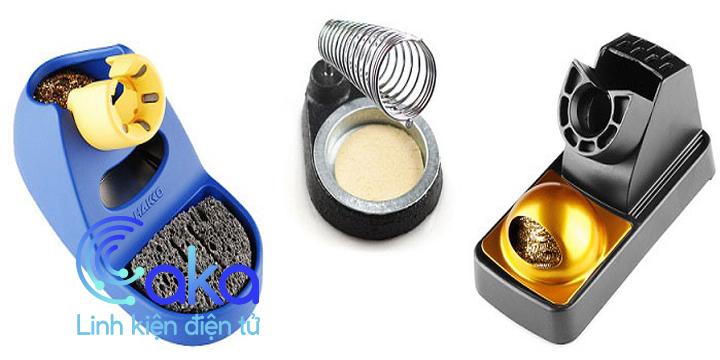 Kệ hàn lò xo, đế gác mỏ hàn giúp cố định tay hàn khi không sử dụng. Bọt biển và bùi nhùi giúp làm sạch đầu mũi hàn.