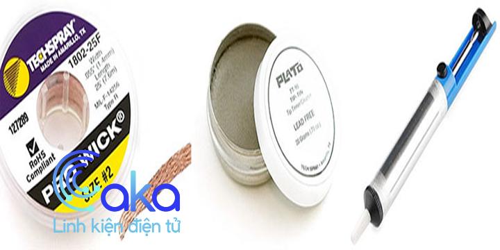 Máy hàn,mỏ hàn chỉnh nhiệt độ, thiếc hàn, chất trợ hàn, mỡ hàn, cây hút thiếc, dây hút thiếc.