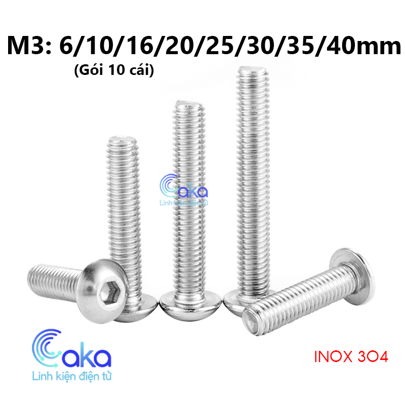 INOX 304 Bulong vít lục giác đầu dù M3 thép không ghỉ nhiều kích thước