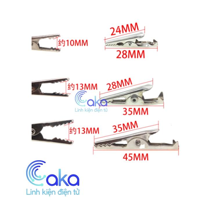 Kẹp cá sấu, Đầu kẹp cá sấu là bộ đầu kẹp cá sấu có vỏ bọc cách điện linh hoạt (có thể tháo rời), đảm bảo các tiêu chuẩn an toàn cách điện với người sử dụng và thiết bị. Bộ đầu kẹp cá sấu có 1 vỏ bọc màu đen, 1 vỏ bọc màu đỏ để dễ dàng phân biệt cực âm dương khi đấu vào bộ nguồn. Đầu kẹp cá sấu cỡ đảm bảo kẹp và tiếp xúc tốt với các cực điện của nguồn điện.