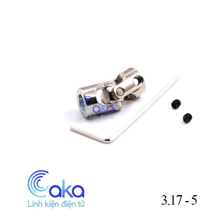 Khớp nối trục khuỷu động cơ 3.17-5mm có đầu lỗ trục 3.17mm được sử dụng để nối trục có đường kính 5mm với nhau trong các cơ cấu truyền động như chân vịt thuyền, xe,..., khớp được làm bằng kim loại chắc chắn cho độ bền và độ thẩm mĩ cao.