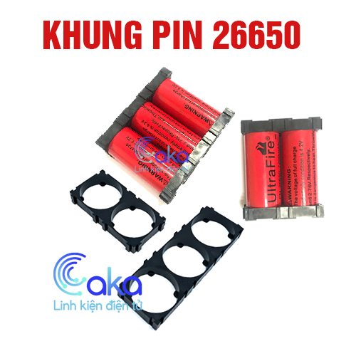 Khi kết nối và đóng hộp pin 26650 rất dễ bị bung mối bấm kẽm khi sử dụng trong thời gian hoạt động do động cơ rung lắc pin , để hạn chế việc ấy nay đã có khung gắn pin 26650, Ngoài ra khung giữ pin này có được dùng chung với các loại pin 26700 26800.