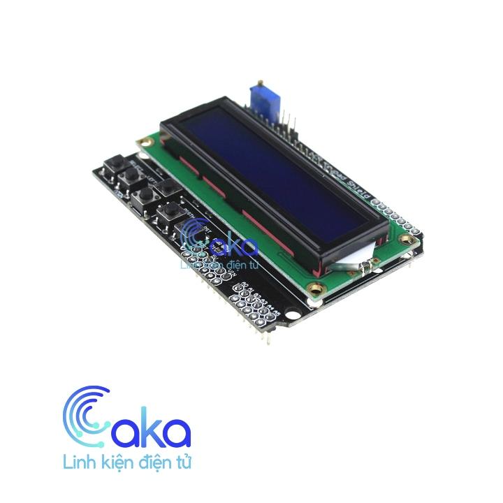 LCD1602 Keypad Shield được phát triển và tương thích với các board Arduino, nhằm tạo một giao diện người dùng thân thiện, cho phép người dùng đơn giản hóa quá trình điều chỉnh và làm mạch. Module này bao gồm màn hình LCD 16×2 ký tự để hiển thị chữ trắng đèn nền xanh dương và bàn phím có 6 phím — chọn, lên, phải, xuống, trái và reset.