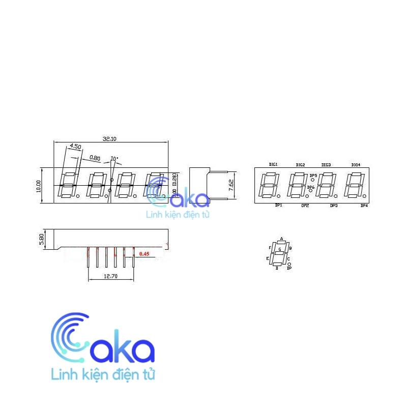 Led đồng hồ 0.28 Anode 4 số phù hợp cho việc thiết kế đồng hồ nhỏ gọn và tích hợp sẵn trên 1 led.