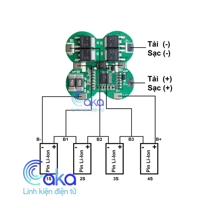 Hàn theo thứ tự từ B- (0V), B1(3.6V/4.2V), B2(7.2V/8.4V), B3(10.8V/12.6V) và B+ (14.4/16.8V).