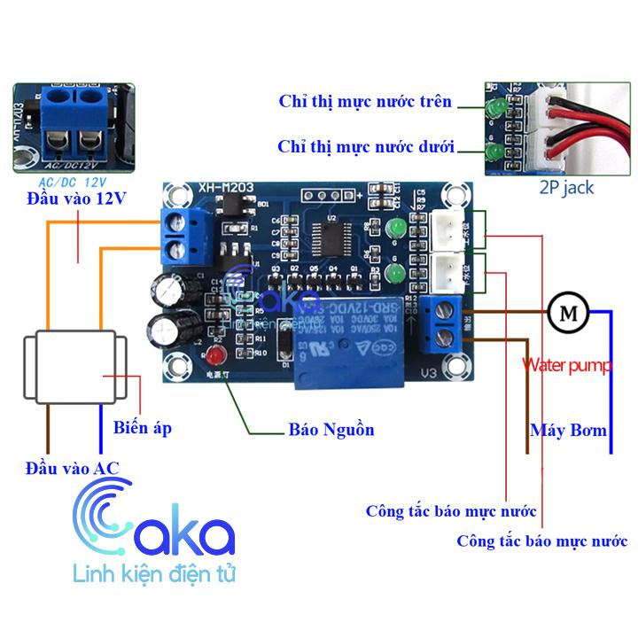 Mạch bơm nước tự động XH-203 được ứng dụng để điều khiển máy bơm, tự động bơm nước khi nước cạn và tự động ngắt khi bơm nước đầy để tránh lãng phí khi bơm trào nước ra bên ngoài.