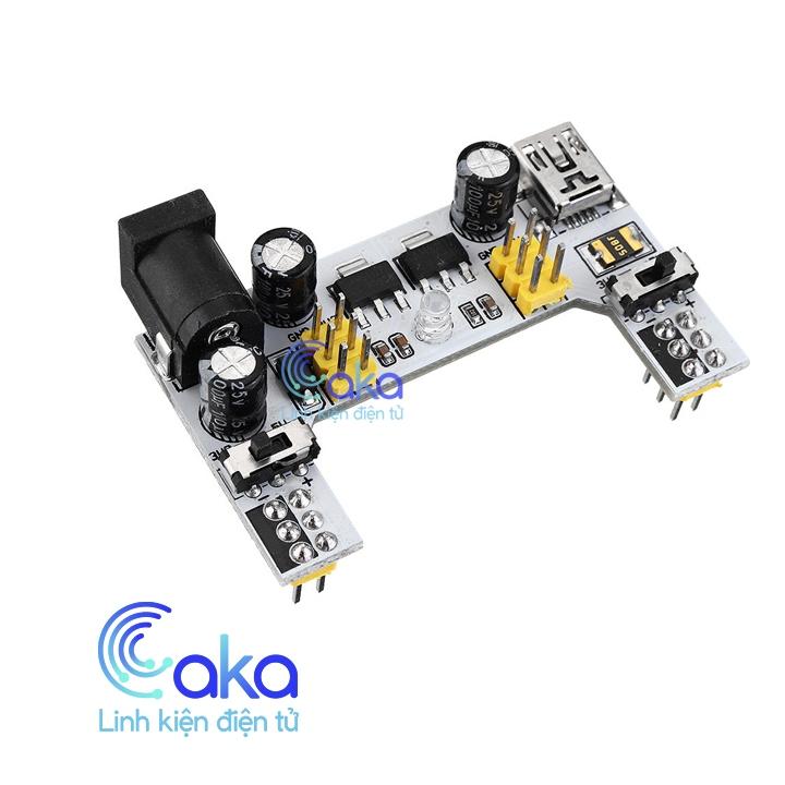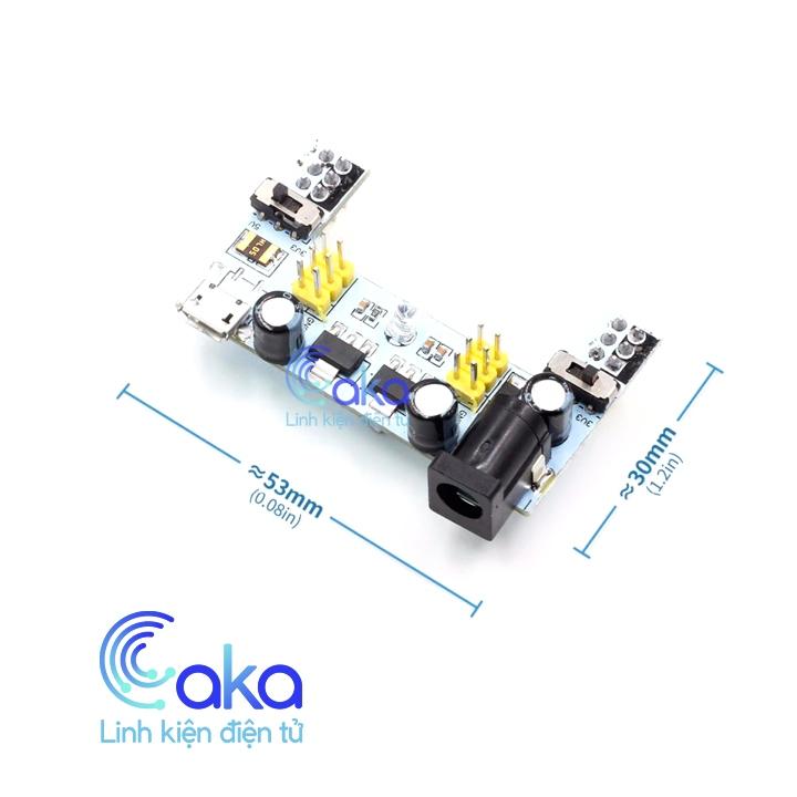 Mạch cấp nguồn Breadboard được sử dụng với các loại Breadboard kích thước chuẩn như MB-102 hoặc loại MB-102 Mini giúp cấp nguồn 3.3VDC hoặc 5VDC cho các đường dẫn nguồn của Breadboard để tiện lợi cho việc cấp nguồn cho các Module khi sử dụng.