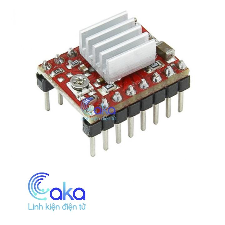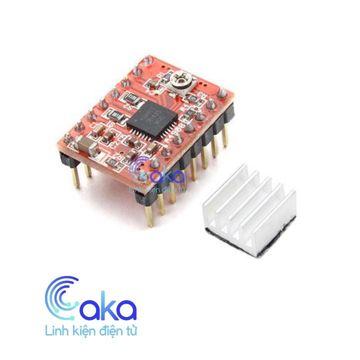 Mạch điều khiển động cơ bước A4988 là driver điều khiển động cơ bước cực kỳ nhỏ gọn, hổ trợ nhiều chế độ làm việc, điều chỉnh được dòng ra cho động cơ, tự động ngắt điện khi quá nóng . A4988 hỗ trợ nhiều chế độ hoạt động của động cơ bước lưỡng cực như: Full, 1/2, 1/4 , 1/8 và 1/16.