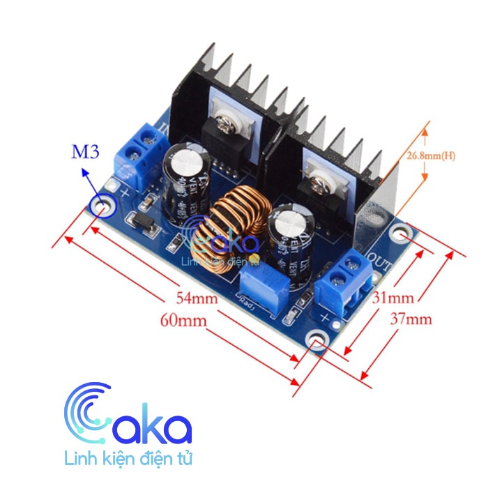 Mạch giảm áp DC-DC 8A XL4016 hiển thị led có chức năng điều chỉnh hạ điện áp với dòng tải tối đa lên đến 8A, công suất tối đa lên đến 250W.
