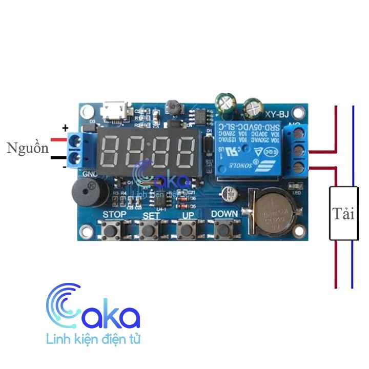 Mạch hẹn giờ bật tắt thời gian thực 5-60VDC. Dùng để hẹn giờ bật tắt thiết bị điện. Có thể cài đặt tới 5 chương trình bật/tắt khác nhau. Có còi báo và ngõ ra điều khiển relay. Có pin nhớ chạy thời gian thực nên vẫn hoạt động đúng ngay cả khi mất điện.