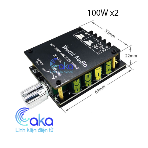 - Mạch khuếch đại âm thanh 100W ZK-1002L Bluetooth 5.0 và IC TPA3116D2 khuếch đại công suất class D của hãng TI có hiệu suất rất cao, cho công suất ngõ ra 2 kênh, mỗi kênh 100W tần số điều chế tối đa là 1.2MHz, độ méo đầu ra ở công suất cao nhỏ hơn 0.1%.