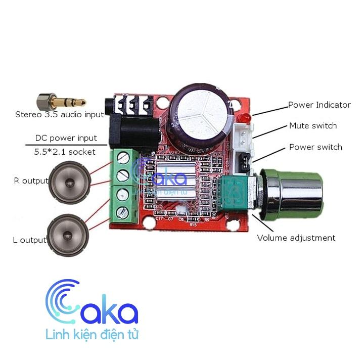 Mạch khuếch đại âm thanh PAM8610 10W Hifi 2.0 Class D được thiết kế dựa trên IC PAM8610 với công suất khuếch đại 2x10W chuẩn class D, đặc điểm ưu việt của khuếch đại tín hiệu âm thanh Class D là ít tỏa nhiệt, hiệu suất ngõ ra cao và kích thước nhỏ gọn, mạch có thể điều chỉnh âm lượng ngõ ra trực tiếp trên board bằng volume, âm thanh ngõ vào qua cổng 3.5mm.