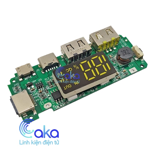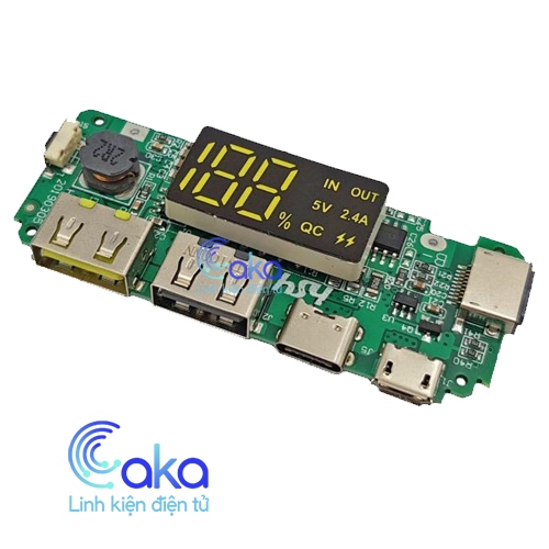 Mạch sạc dự phòng 2 cổng USB, Iphone, Micro USB và Type-C 5V 2.4A là module mạch sạc được tích hợp sẳn 3 cổng ngõ vào: USB micro USB, type-C, lightning (iphone) rất tiện lợi. Mạch sạc dự phòng 2 cổng USB này được sử dụng để chế các loại pin sạc dự phòng với khả năng cung cấp dòng ra cổng USB (1 cổng sạc nhanh 2.4A, 1 cổng sạc Flash). Mạch sạc pin có thể dùng để sạc cho hầu hết các loại Tablet hoặc Smart Phone có dòng sạc lớn hiện nay, mạch có thiết kế và chất lượng linh kiện tốt cho độ bền và độ ổn định cao.