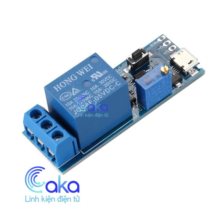 Mạch kích tạo trễ sử dụng nguồn cấp 5V cổng Micro USB hoặc 6.3 ~ 30V ở chân V- và V+.