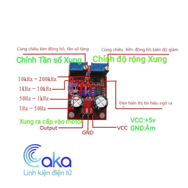 Độ rộng xung ngõ (Duty Cycle) ra có thể điều chỉnh được.