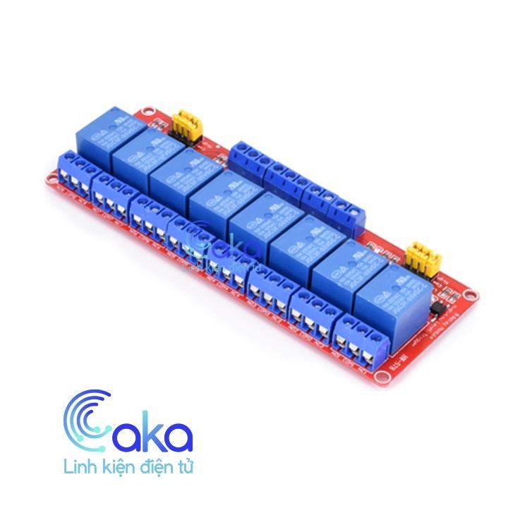 Module Relay 8 Kênh 5V 10A sử dụng Opto chọn mức kích High/Low được sử dụng để bật, tắt thiết bị AC/DC qua Relay, mạch có hai mức (High/Low) tùy chọn qua Jumper, mạch có Opto cách ly cho độ an toàn và chống nhiễu, thích hợp với các ứng dụng bật tắt, điều khiển thiết bị qua Relay.