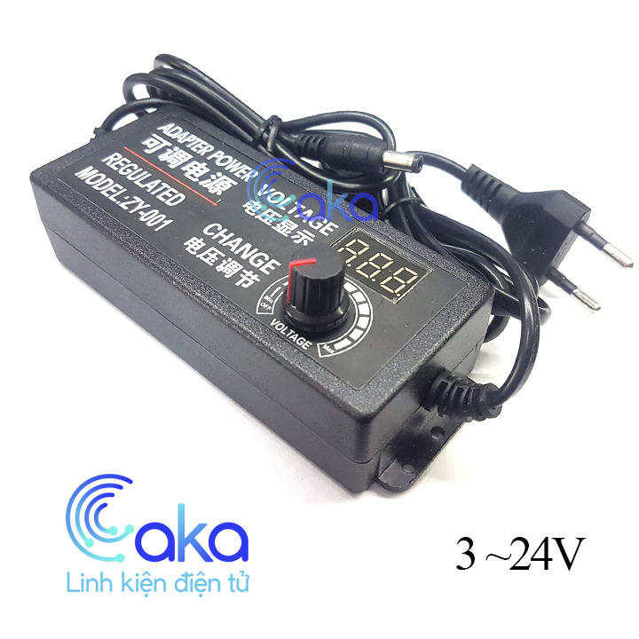 Nguồn Adapter điều chỉnh điện áp 3-24V 9-72W là Nguồn Adapter điều chỉnh điện áp có hiển thị có hiển thị đèn led báo Volt đang ở mức điện áp bao nhiêu. Nguồn Adapter điều chỉnh điện áp có thiết kế nhỏ gọn, thường được sử dụng để cấp nguồn, test sản phẩm: Motor, board mạch điện,Nguồn Adapter còn có biến trở điều chỉnh linh hoạt dải điện áp trong mục đích nhu cầu sử dụng dễ hàng quan sát mức điện áp...