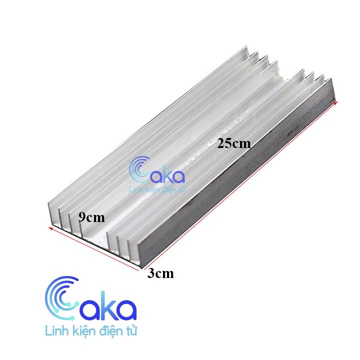 Nhôm tản nhiệt 25x9x3cm được ứng dụng làm linh kiện tản nhiệt cho nhiều loại đồ gia dụng, máy móc công nghiệp khác như : máy giặt, tủ lạnh, máy bơm, máy gia nhiệt, máy sấy,làm tản nhiệt cho sò nóng lạnh...v..vv