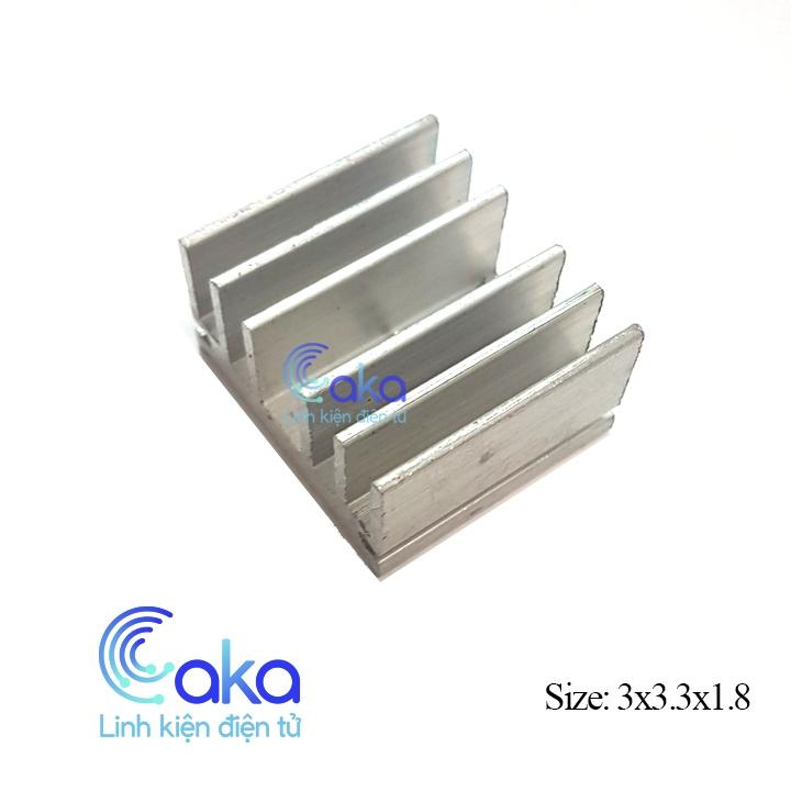 Nhôm tản nhiệt 3x3.3x1.8cm được ứng dụng làm linh kiện tản nhiệt cho nhiều loại đồ gia dụng, máy móc công nghiệp khác như : máy giặt, tủ lạnh, máy bơm, máy gia nhiệt, máy sấy,làm tản nhiệt cho sò nóng lạnh...v..vv