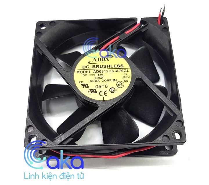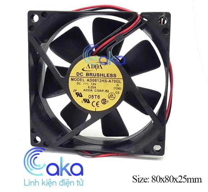 Quạt tản nhiệt 12V DC Brushless có kích thước tiêu chuẩn 80mm x 25mm x 80mm, mức điện áp làm việc 12VDC. Quạt có tác dụng làm quạt làm mát máy tính, quạt làm mát hồ cá, quạt tản nhiệt tủ điện....