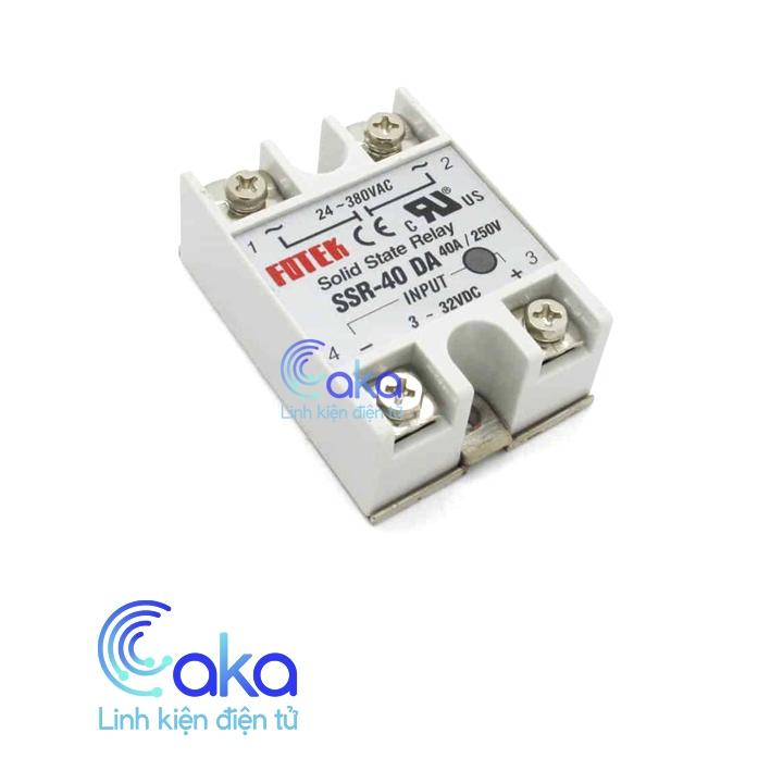 Solid State Relay SSR-40DA 40A Fotek DC Được sử dụng trong các hệ điều khiển có cường độ đóng cắt lớn và liên tục trong thời gian ngắn và ứng dụng trong điều khiển nhiệt độ...Thích hợp cho việc điều khiển nhiệt, đèn, quạt,... Được sản suất theo tiêu chuẩn cao đảm bảo quá trình hoạt động ổn định trong môi trường công nghiêp. Với dòng tải định mức lên tới 40A phù hợp với tải công suất cao.