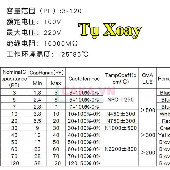 Tụ xoay 6mm giá rẻ là loại tụ điện có thể điều chỉnh điện dung thay đổi cố ý liên tục bằng cơ học hoặc điện tử.